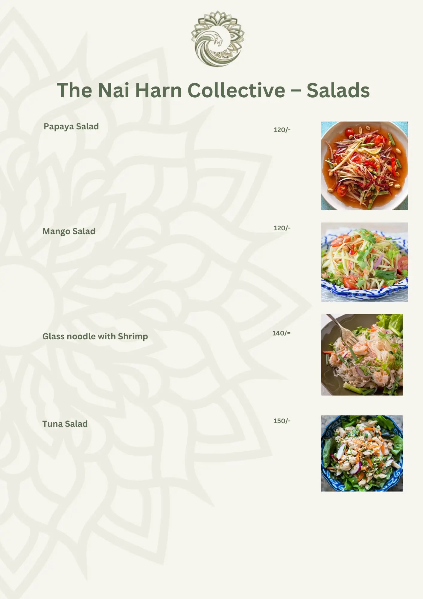 The Nai Harn Collective Restaurant Menu menu page 1 - featuring gourmet dishes, beverages, and dining options at our boutique villa hotel in Phuket